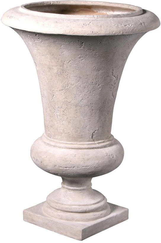 Add the distinction and grace of a Habsburg castle to your own palace, with the clean lines and mindful design of this classic Viennese Architectural Garden Urn. Make a grande statement on a terrace, flanking a doorway or a front gate with a pair of these over yard tall urns, cast in quality, fiberglass reinforced designer resin with an exquisite faux antique stone finish. Adorn your garden and bring to mind the astounding Schonbrunn Castle and with this impressive focal piece, breathtaking filled with flowers, lush greenery or creating a magnificent seasonal display. 28½”Dx40½”H. 49 lbs.